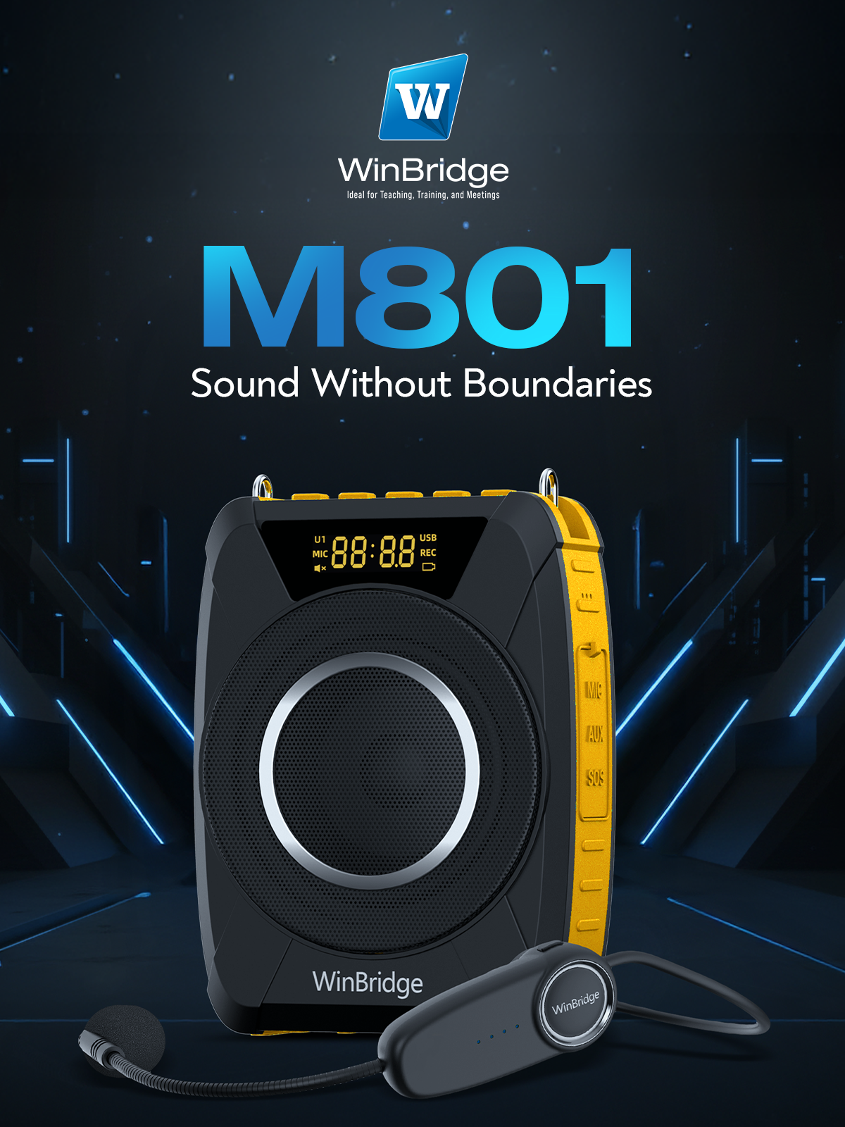 WinBridge S93 Pro Voice Amplifier with Wireless Microphone & Speaker - Portable Mini Bluetooth PA System with Handheld Mic, 30W Ultra-Light Rechargeable Megaphone for Teachers, Speech & Events