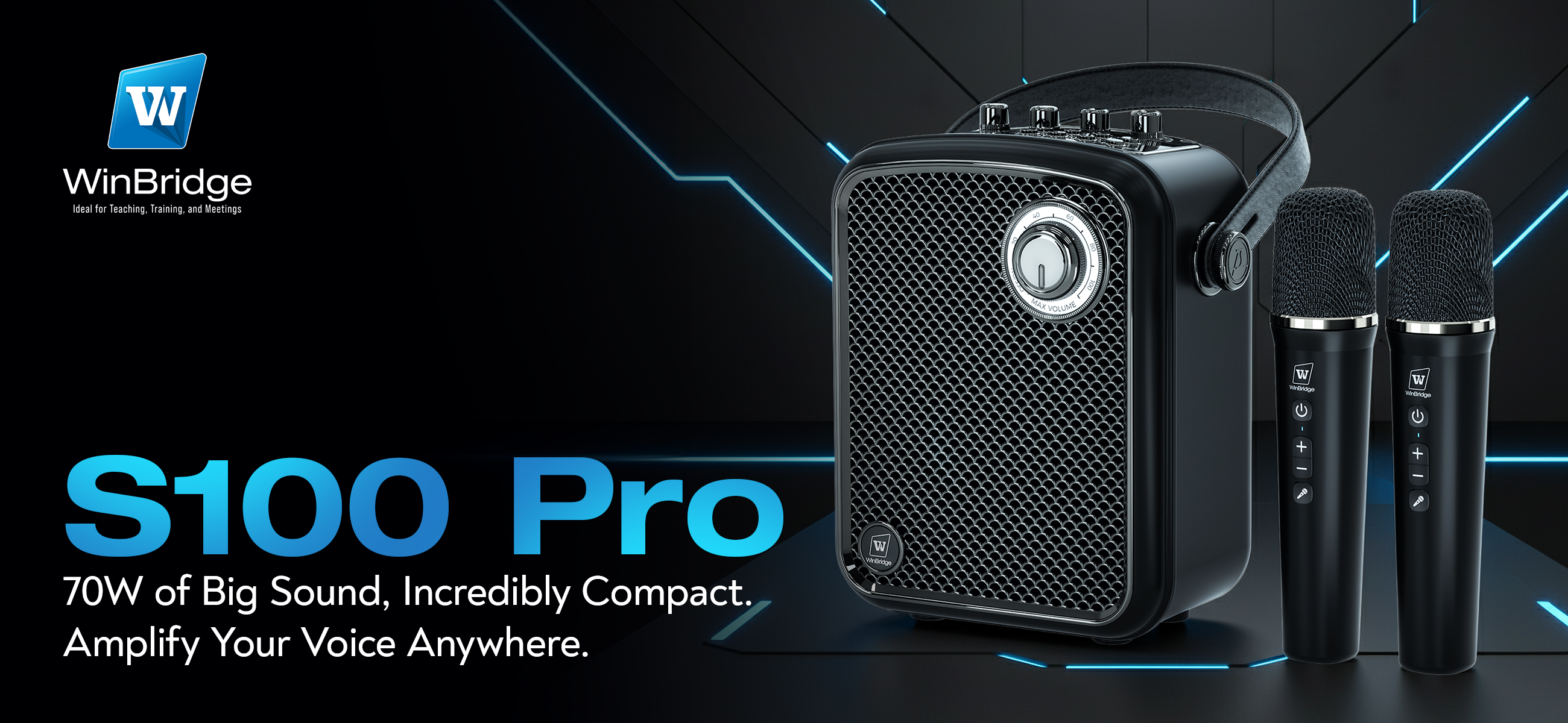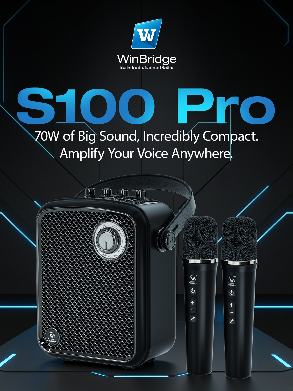WinBridge S99 100W Powerful Wireless Voice Amplifier with Two Handheld Microphones for Teachers,Portable PA System with Sound Effects, Karaoke Speaker and Mic System Support Guitar Play