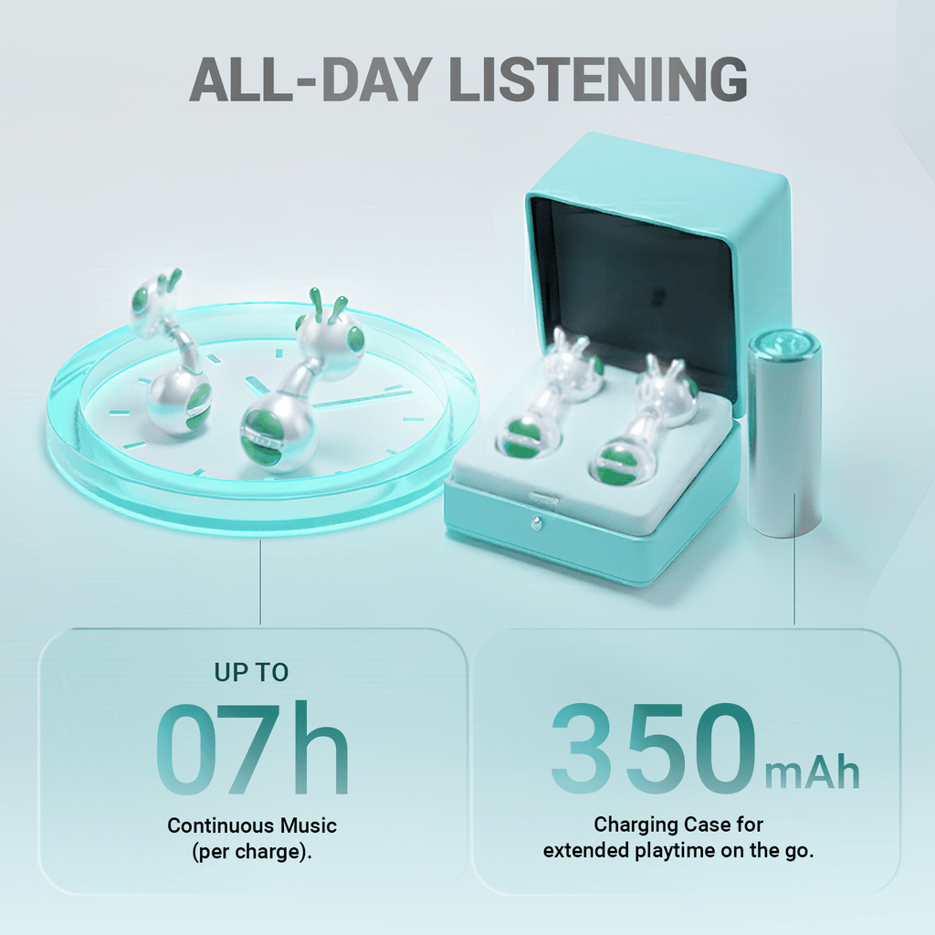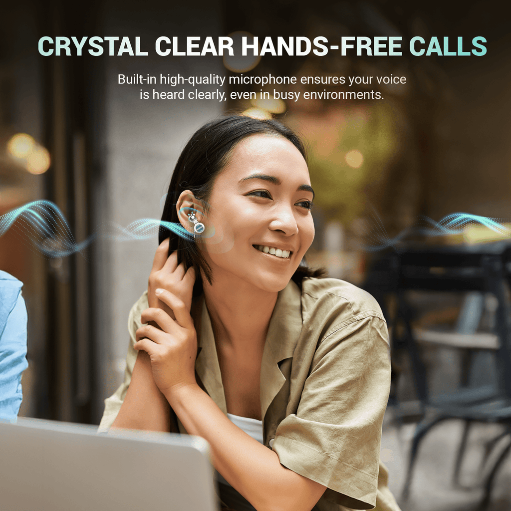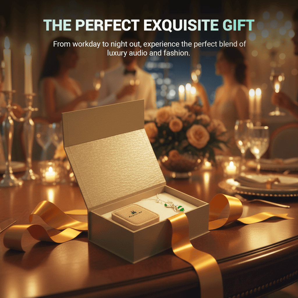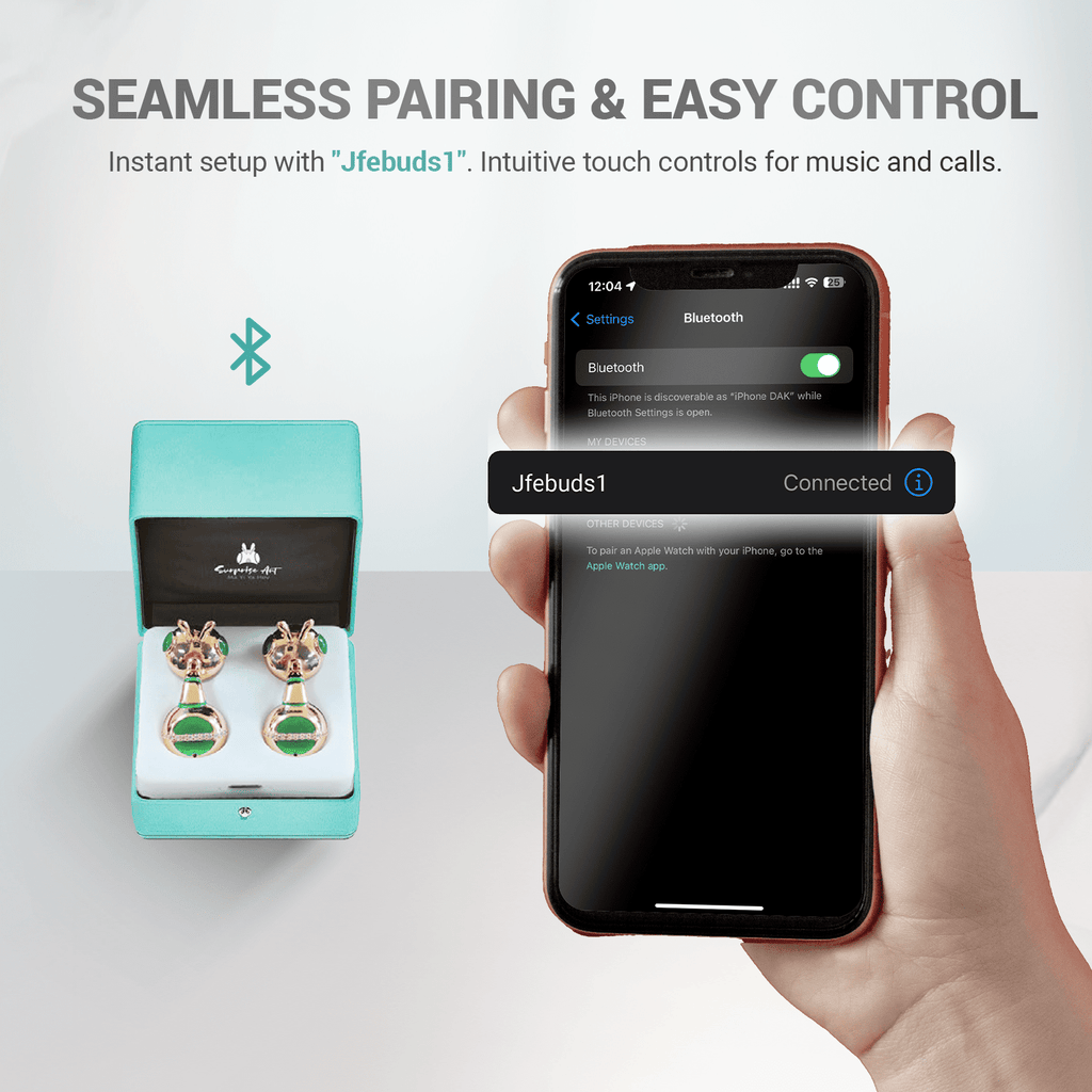 WinBridge LUX02 Fashion Bee Design Bluetooth Earbuds for Women, Silver & Emerald Semi-in-Ear, Open-Ear Comfort, Bluetooth 6.0, Clear Calls