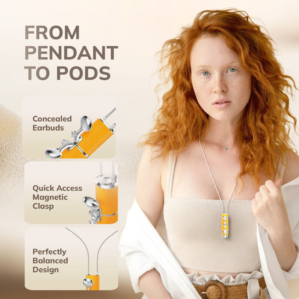 Redefine your daily essentials. This is more than an audio device—it's a chic, wearable necklace accessory. The charging case is designed as a stylish metallic pendant, effortlessly transitioning between a fashion statement and a functional earbud case, perfect for any occasion.